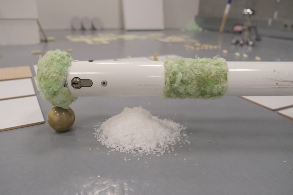 The work is not a fixed whole, but a moment in an ongoing process of assembling, testing, and responding. What happens when familiar things are pulled out of their usual context? What appears in the space between them?
